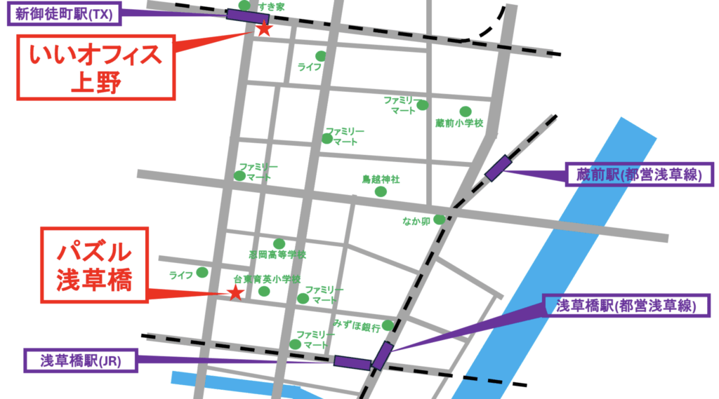 希望の対面場所はどちらですか(必須) パズル浅草橋いいオフィス上野オンライン